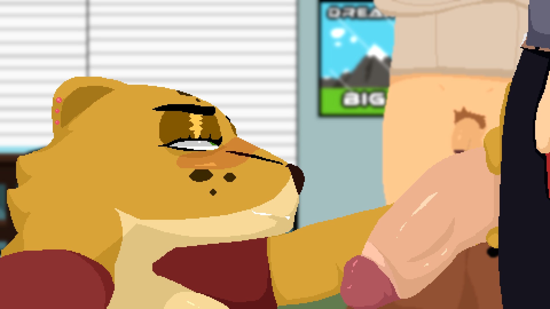 Femboy shark is Riding a wall-dildo